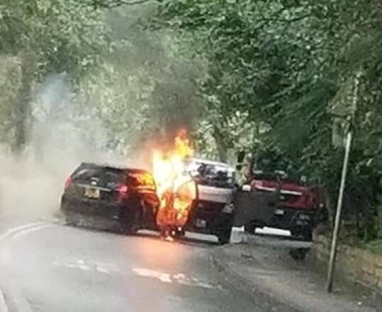 劫匪在得手后從容放火燒賊車毀滅證據。網上圖片