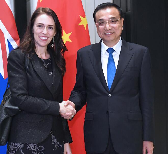 李克强表示,建交45年来,中新关系保持积极发展势头,长期走在中国同西方发达国家关系的前列。中方赞赏新方奉行一个中国政策。相信你担任总理后会继承良好传统,继续把中新关系推向前进,并创造更多新的“第一”。中方愿同新方,进一步发挥互补优势,稳步推进双边自贸协定升级谈判,实现更高层次的互利共赢。