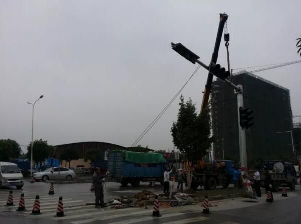当天下午4时许,记者来到事发现场了解情况。相关部门正对撞损的信号灯进行拆除。