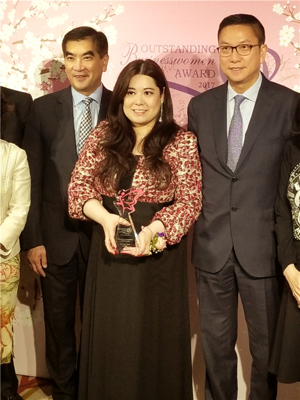 澳至尊國際控股有限公創辦人及行政總裁蔡何家敏获奖,大批親友到場祝賀。