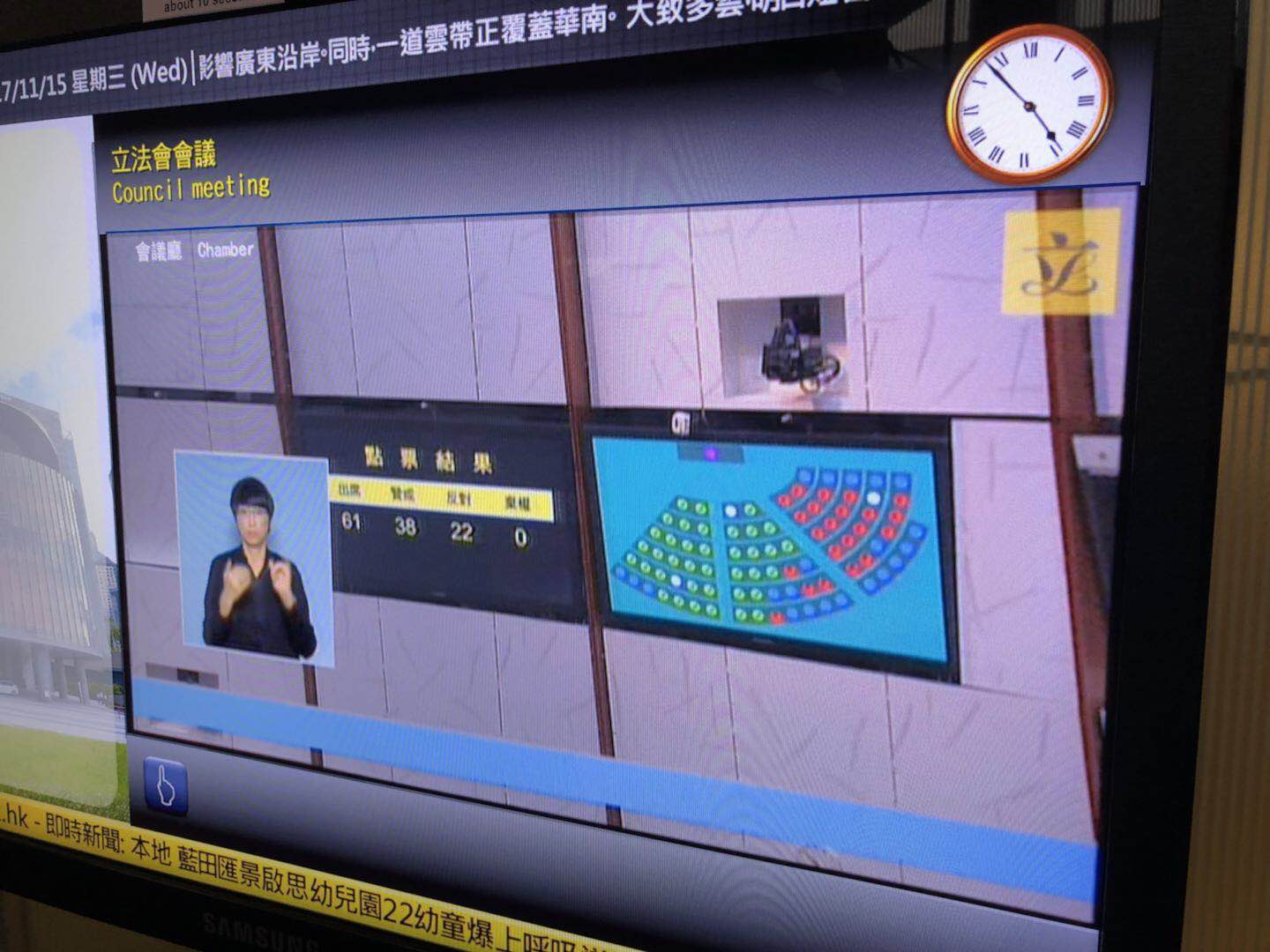 圖:一地兩檢無約束力議案獲立法會以38票贊成,22票反對下通過。