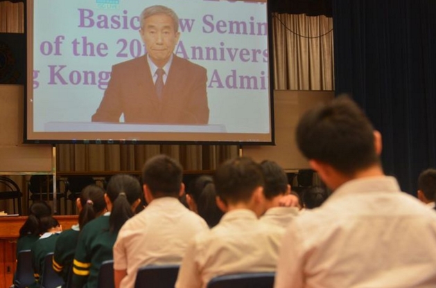 基本法委員會主任李飛出席《基本法》研討會並發表演說,約50間接受教育局邀請的中學,直播李飛演講內容。其中獅子會中學今早安排四班共約120名學生觀看直播,並需完成工作紙了解《基本法》。