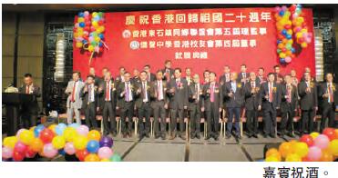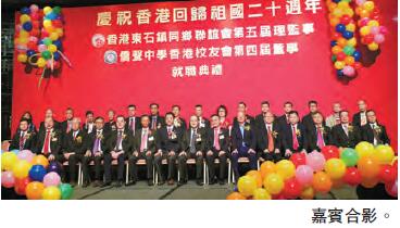 中央人民政府駐香港特別行政區聯絡辦公室港島工作部處長陳繼深,香港行政會議成員、立法會議員張國鈞,華閩(集團)有限公司總經理丁炳華,香港福建社團聯會永遠名譽會長施子清,晉江市委常委、統戰部部長黃文福,香港福建社團聯會副主席王大治,香港晉江社團總會主席洪頂超,晉江市東石鎮黨委書記洪建立,晉江市僑聲中學校長王海墘,全港各區工商聯會長盧錦欽邀擔任主禮嘉賓。