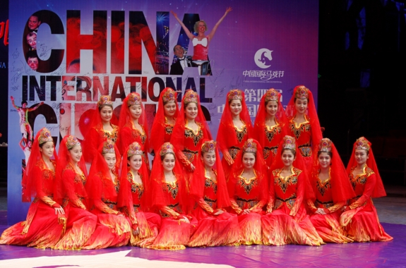 来自新疆的杂技演员靓丽阵容。
