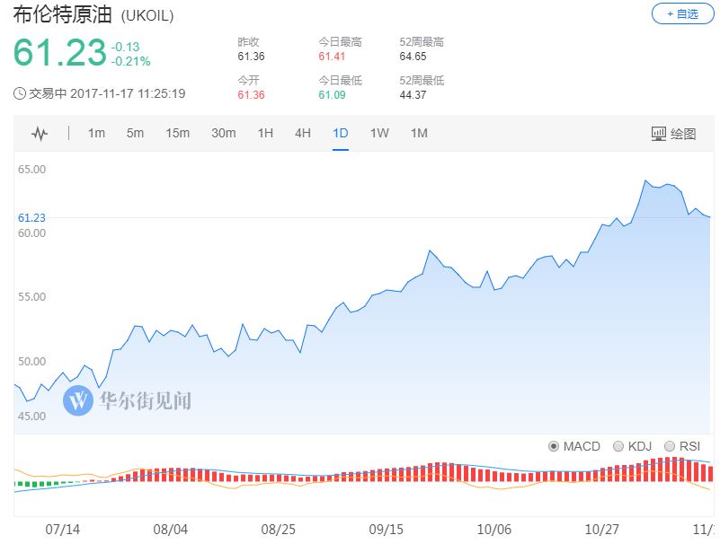 當前布倫特油價小幅下跌0.21%,報61.23美元/桶。