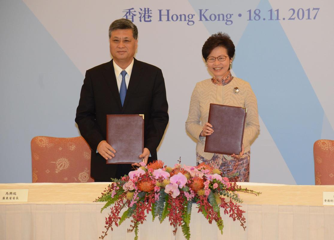 林鄭說:「我很高興今天與馬省長簽署《合作安排》,正式展開『三步走』程序。特區政府會小心考慮香港社會各界包括立法會議員提出的意見,在推展『一地兩檢』工作時作適當的跟進,爭取如期在西九龍站落實有關通關程序。」