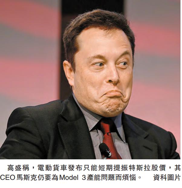 【香港商報网訊】高盛分析師坦伯瑞諾認為,電動貨車發布只能短期提振特斯拉股價,而Model 3長期存在的產能困境則將依然嚴重打壓股價。高盛預計特斯拉股價未來6個月將下跌34%,至205美元。
