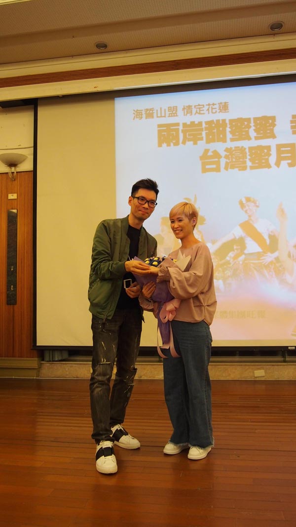 10多對內地及港澳愛侶乘直飛航班抵花蓮蜜月游。記者何加祺攝