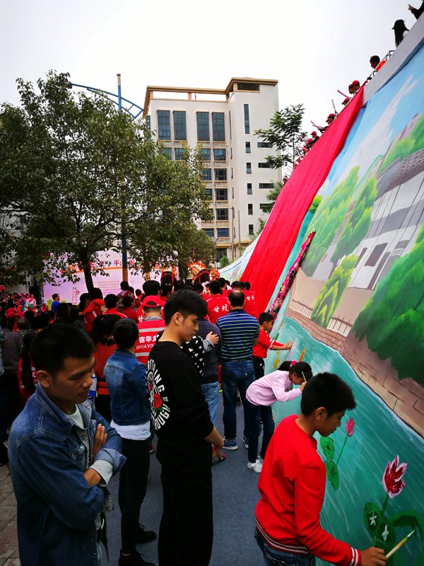 据悉,这面墙面积近500平方米,之前陈旧、脏乱的墙面,已经被一幅幅生动的图画所覆盖,这些被美化的墙面,是在吉华街道党工委、办事处的支持下,由吉华街道妇联联合深圳市大美青少年成长发展中心完成,名为“幸福吉华·亲子手绘墙”。当天同时揭幕的还有位于光华社区的一面200多平方米以绿色环保为主题的亲子手绘墙。这是该街道集全部之力推动“产业吉华、平安吉华、幸福吉华”建设的一个缩影。