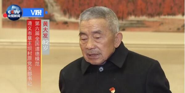 这一暖心感人的场景发生在11月17日全国精神文明建设表彰大会的现场。其中一位老人,就是来自贵州遵义市播州区平正仡佬族乡原草王坝村党支部书记黄大发。他带领村民们用30多年的时间,在峭壁悬崖间挖出了一条10公里的“天渠”,使曾经缺水干旱的贫困村面貌一新。