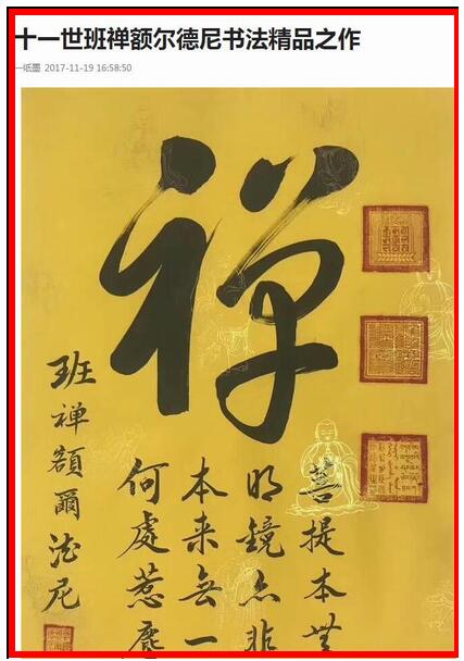 原标题:十一世班禅朋友圈声明 市面出售其字画“纯属假冒”