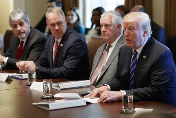 11月20日,在美国首都华盛顿,美国总统特朗普(右一)在内阁会议上宣布将朝鲜重新列入美国的“支持恐怖主义国家”名单。