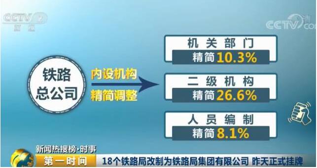 此外,中国铁路总公司本级的公司制改革方案建议,已经报国家出资人代表——财政部。铁路总公司内设机构精简调整,机关部门、二级机构、人员编制分别精简10.3%、26.6%、8.1%;其所属非运输企业年内将基本完成公司制改革。