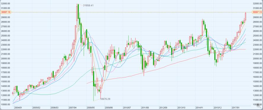 港股恒生指数昨天大涨1.9%,报29818点,距离3万点只一步之遥;恒指夜期昨晚高见31341点,收报30102点;隔夜美股三大指数收高,港股ADR指数突破三万点大关。恒生指数今早高开0.9%,报30087.19点,时隔10年再次突破3万点大关。国企指数涨1.05%,涨124.44点,报11998.81点;红筹指数涨0.52%,张22.78点,报4379.03点。大市盘前成交58亿港元。
