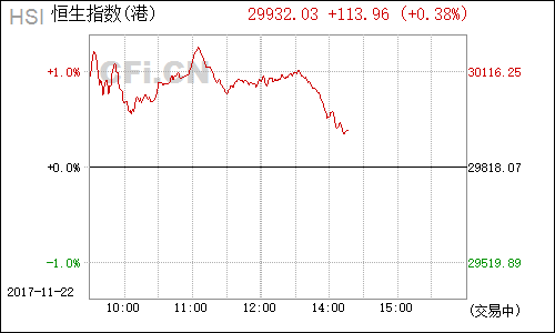 香港恒生指數今天開盤漲0.9%,突破30000點大關,至30087.19點,昨日收漲1.91%。恒生指數達到2007年11月以來的高點。開盤後,恒生中國國企指數也大幅上揚1.33%,至12031.870點。