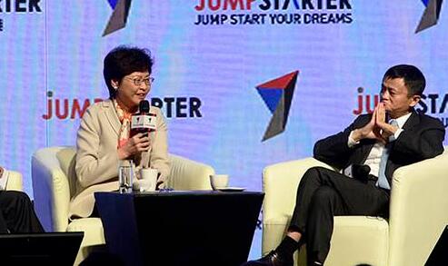 21日晚,香港规模最大的创业大赛——Jumpstarter创业大赛决赛在湾仔会展中心举行,在活动的压轴环节中,香港特区行政长官林郑月娥与阿里巴巴集团董事局主席马云进行精彩对谈。两人时而谈笑风生,时而针锋相对,引发现场不停的笑声、掌声与欢呼声。