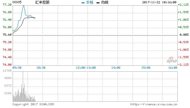 新浪港股讯 11月22日消息,汇丰控股(76.6, 1.00, 1.32%)直线拉升,截止发稿,涨1.79%,报76.9元。
