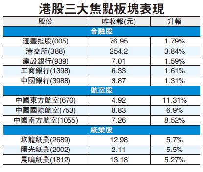 金融股接力 航空股造好