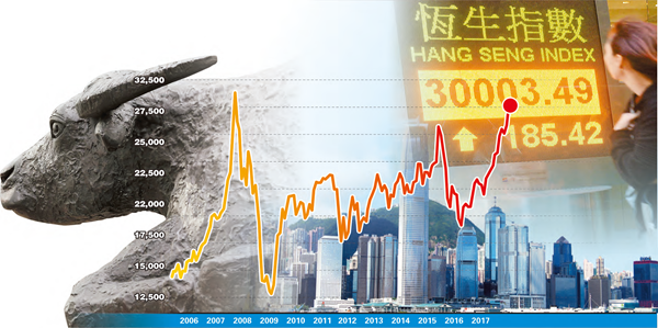 時隔10年,港股再次冲上30000點關口。不僅如此,恒指較去年底升逾三成六,交易額大幅上升約三成,lPO上市宗數、集資額也名列前茅。進入2017年,無論港股自身動力,還是內地和國際經濟基本面,都為港股創造了有利因素。