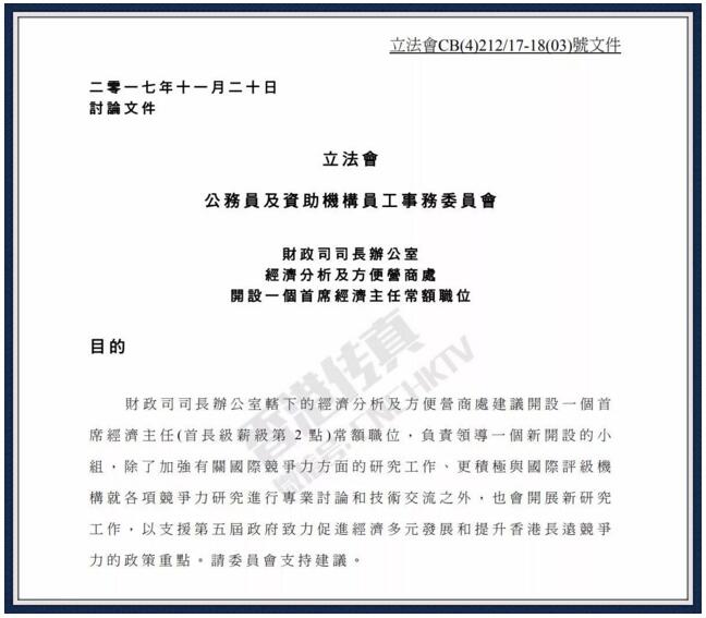 11月20日,香港特区立法会公务员及资助机构员工事务委员会开会,讨论关于设一个首席经济主任职位的事项,这个主任的职责是“负责与国际评级机构展开更深入和广泛的专业交流,以提升对国际竞争力的了解及研究层次。”