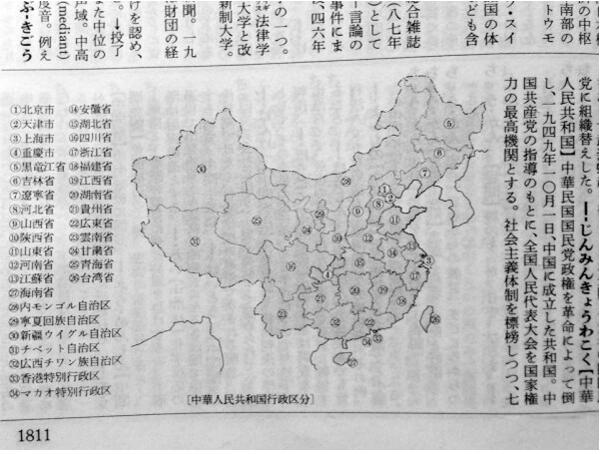 第一,在“台湾”的条目中有“1945年日本战败回归中国,1949年移转给国民党政权”的描述,抗议团体称这完全“违反事实”。第二,在《广辞苑》第1811页的中国地图(如图)中,台湾被列为中国的第26个省,并以数字明记。第三,《广辞苑》中“日中共同声明”条目的记述是:“日本承认中华人民共和国是唯一正统政府,对台湾的(中国)归属,等于是实质上的承认”,这也引起这些团体不满。文章分析称,该辞典内的“三大错误”记述都与“中国的政治宣传”有关,“误导日本国民”,“是在正当化中国企图并吞台湾的野心”。