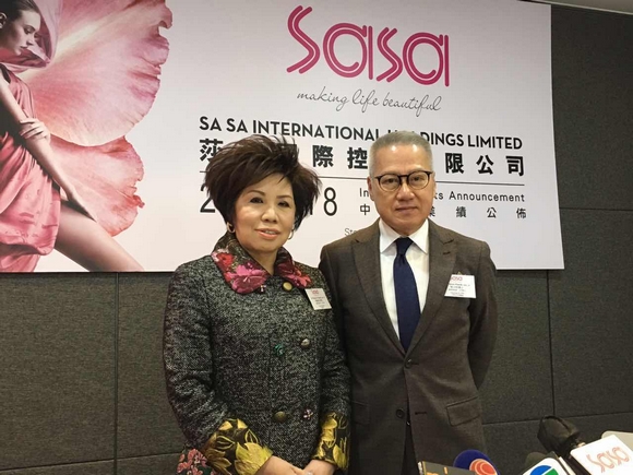 莎莎是繼今年6月公布全年業績後,再次沒有派發特別股息。主席郭少明(右)稱,集團一向採取接近100%的派息比率,但日後如何派息,則由董事局決定。