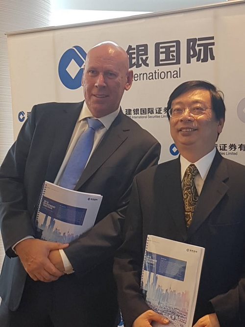 建銀國際研究部董事總經理兼主管蘇國堅(圖右)表示,明年第二至第三季,一些中小型股份有望追落後,不排除會出現「雞犬皆升」情況,因泡沫爆破通常會在這個情況下發生。
