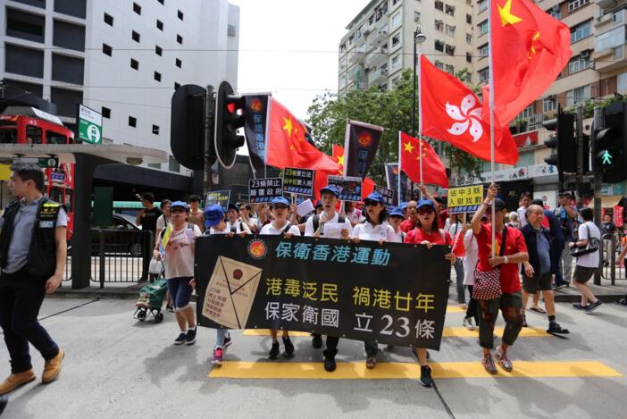 7月1日下午14时许,香港爱国团体在维园附近游行,要求为23条立法,铲除“港独”。(环球网)