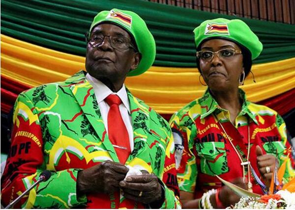 穆加贝及其夫人格蕾丝·穆加贝。视觉中国 资料图