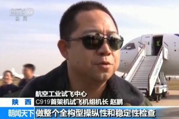 航空工业试飞中心C919首架机试飞机组机长赵鹏:我们做了整个全构型操纵性和稳定性的检查,着陆的时候逆风8到9米,又迎着光,难度更大,但是飞机表现很出色。