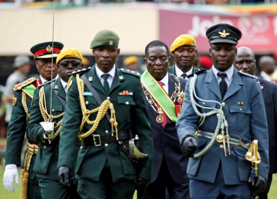 宣誓就職后,姆南加瓦檢閱儀仗隊。路透社