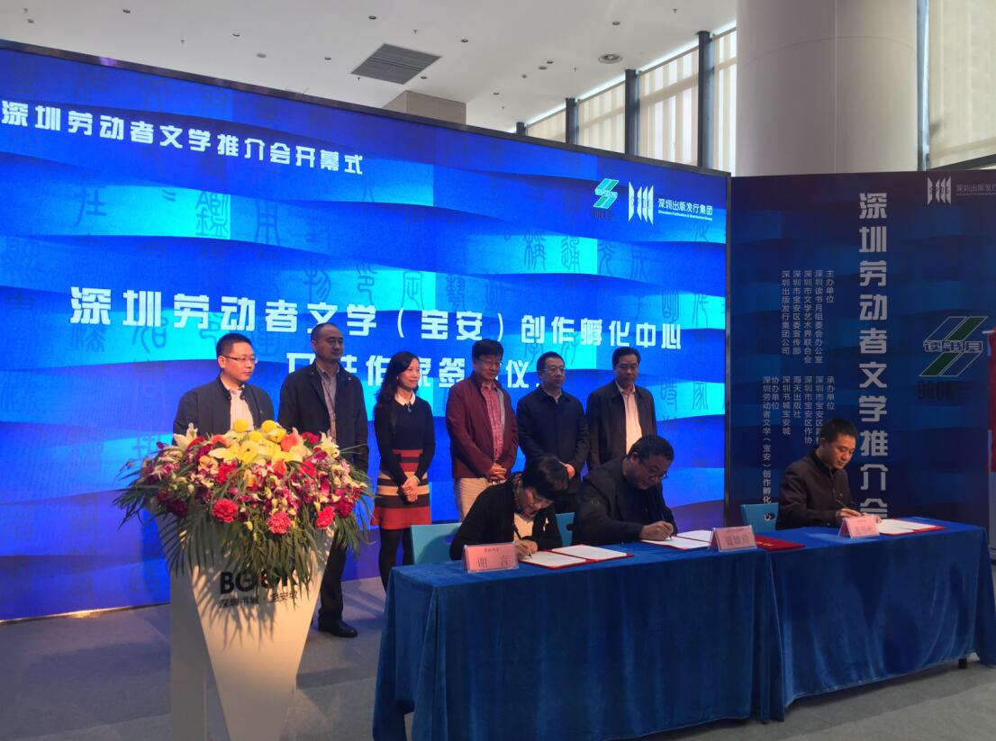 在开幕仪式上,深圳劳动者文学(宝安)创作孵化中心举行了签约作家新书发布仪式,这是该孵化中心成立两年以来成功孵化的第三部劳动者作家文学作品。深圳劳动者文学(宝安)创作孵化中心是由深圳书城宝安城打造的优秀文化品牌项目,该中心于2015年11月7日揭牌成立,坐落在深圳书城宝安城五楼,孵化中心的成立激励了更多青年劳动者加入文学创作队伍,给深圳市特别是宝安区文学后续发展注入新鲜血液,推动深圳市特别是宝安区文学精品工程的实施,实现文学的大繁荣、大发展。