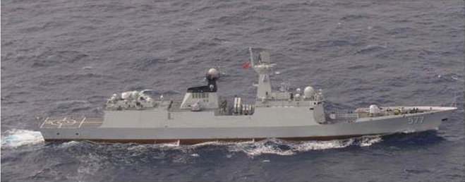解放军派出黄冈号绕行台湾。(图片来源:《中时电子报》)