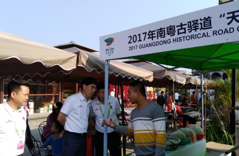 廣東省體育局局長王禹平(中)在古驛道活動中向村民了解情況。