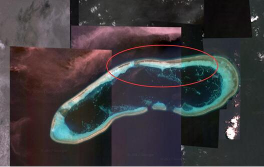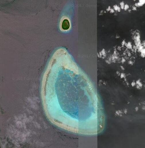 西沙羚羊礁,上方小岛为甘泉岛(图片来源:谷歌地图)