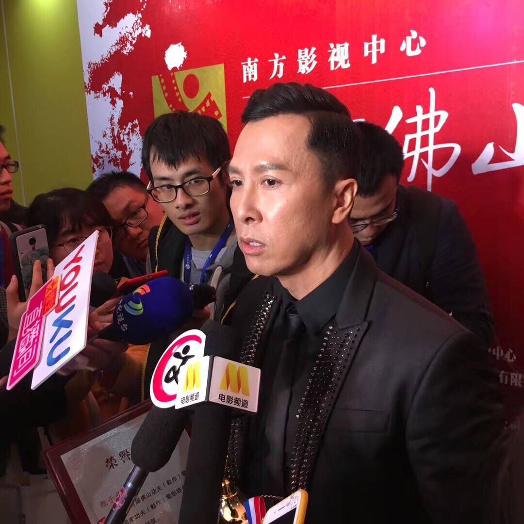 功夫男星甄子丹在获奖后接受媒体采访。