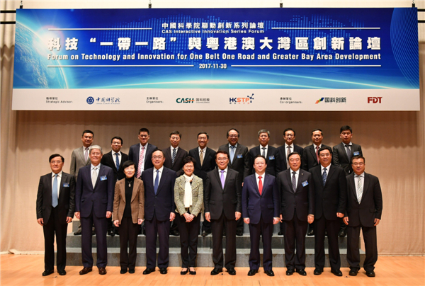 白春禮致辭時指,創新是驅動全球經濟增長的重要因素,創新合作具有重要先導作用,是「一帶一路」沿線國家和地區共謀發展的推進器。粵港澳大灣區背靠大陸、面向南海,經濟實力雄厚,區位優勢明顯,是「一帶一路」戰略支撐點,是促進港澳長期繁榮穩定的重要保障。香港在專業服務、人才培養、科技創新、創意產業等方面具有深厚的積累和明顯的優勢,中科院物理、化學、環境與生態學等一系列學科整體水平已進入世界先進行列。他稱,雙方可優勢互補、共謀合作。中科院將集合全院優勢資源力量,全方位參與粵港澳國際科技創新中心建設。