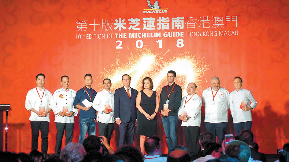 新一版《米芝蓮指南香港澳門2018》昨日正式公布,今年共收錄227間香港餐廳及65間澳門餐廳,其中所有三星餐廳均維持水平,香港共有6間、澳門有2間,分別為Bo Innovation、L'Atelier de Joel Robuchon、龍景軒、8餐廳等;而獲二星的餐廳香港及澳門分別有11間及5間,分別為柏屋、旅、欣圖軒、風味軒等;但今年有3間餐廳由二星跌至一星,分別是都爹利會館、明閣及夏宮。