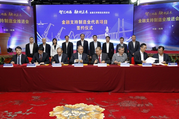 推进会上,中国人民银行广州分行与珠海市政府共同签署《金融支持珠海制造业创新驱动发展战略合作协议》,发挥银行的货币信贷政策引导作用和政府的统筹协调作用,形成地方政府与金融管理部门的优势互补,推动金融支持珠海市制造业创新驱动发展。6家银行机构代表共同发起行动倡议,号召珠海金融机构对制造业的科技创新和转型升级提供强有力的金融支持。珠海市知识产权金融创新服务基地在推进会上成立,并举行揭牌仪式。珠海11个金融支持制造业项目进行了现场签约,签约金额达148亿元。