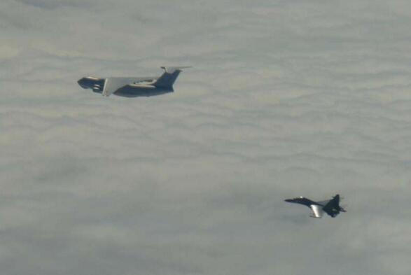 11月20日,解放军出动IL-78空中加油机,伴随演练对苏30战斗机进行空中加油。(资料图)