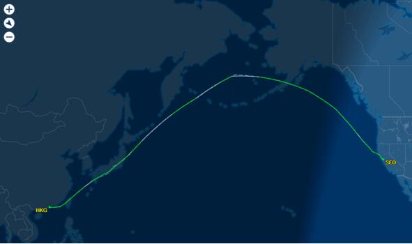 CX 893航班於11月29日本港時間上午7時40分抵達本港,航道途經日本海上空。圖:flightAware