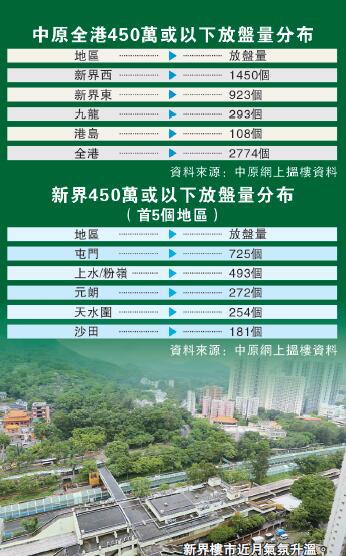 【香港商報網訊】記者曾浩榮報道:《施政報告》10月中公布後,香港樓市重新活躍起來,破頂入市個案再次頻現。在有關背景下,新界二手上車盤還有多少呢?中原網上搵樓資料顯示,新界450萬元或以下放盤單位僅約2373個(截至11月23日,下同),比今年3月逾2800個水平明顯減少。當中有「上車恩物」之稱的天水圍「嘉湖山莊」佔169個,為全港之冠。
