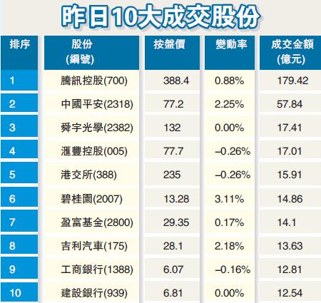 昨日港股先跌后升,靠腾讯回升支撑大市。