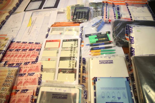 警方檢獲的大批證物。記者區天海攝