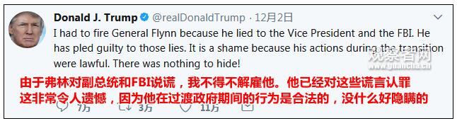 但其实特朗普在2月13日开除弗林之际,并没有提到他对FBI说谎的情况,当时只是说他对副总统彭斯的言论不实。实际上,2月份弗林刚“出局”时,公众根本不知道任何关于FBI的事情。