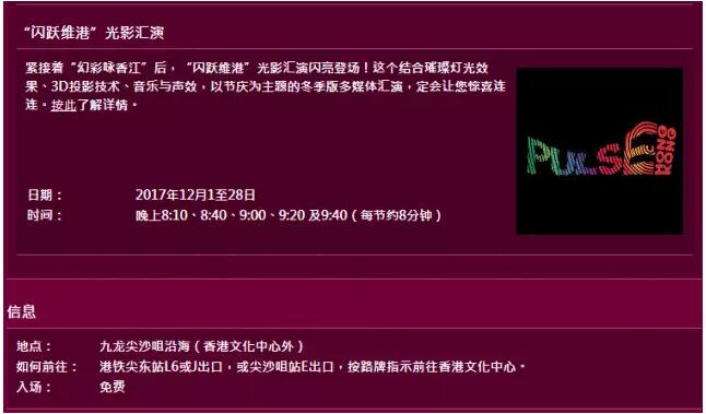 但从12月开始,这个热闹的热门旅游景点有点不同:1日起至28日,全新改版后的灯光音乐汇演“幻彩咏香江”,每晚8时会准点在维多利亚港两岸上演。