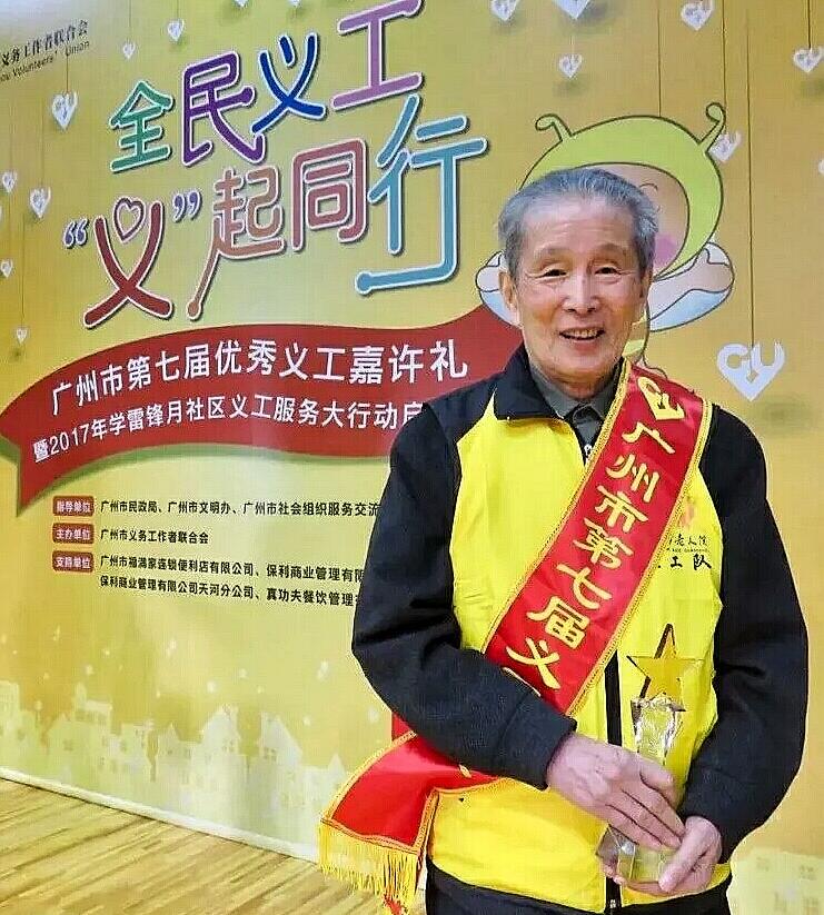 志愿服务蔚然成风,10名广州人中就有1个志愿者,市民街坊触手可及。(图为83岁最美志愿者张振庭:耄耋之年,他10年住进老人院便开始做志愿服务)。
