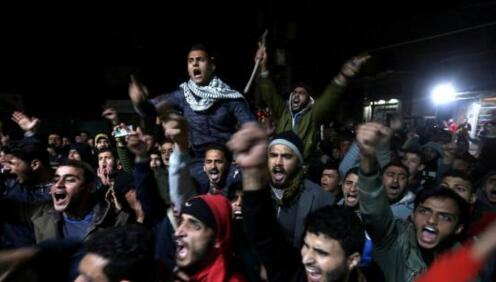 美国承认耶路撒冷为以色列首都,图为愤怒的巴勒斯坦民众在加沙南部的Khan Younis地区发起抗议。