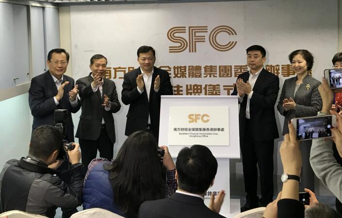 【香港商报网讯】记者金敏华报道:国内第一家全媒体集团,被视为"媒体大省"广东媒体融合发展标杆项目的南方财经全媒体集团(SFC),8日在香港北角举行其驻香港办事处正式成立揭牌仪式。