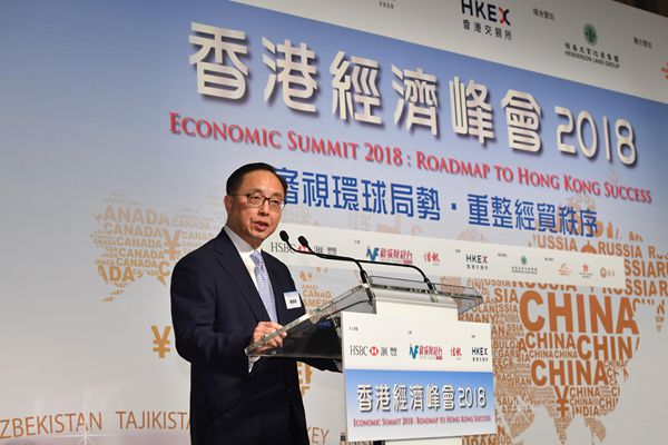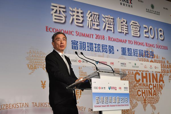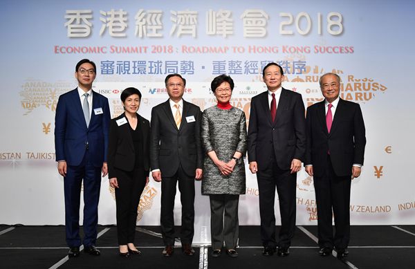 「香港經濟峰會2018」昨日於中環四季酒店舉行,今年以「審視環球局勢,重整經貿秩序」為主題,行政長官林鄭月娥、創新及科技局局長楊偉雄、財經事務及庫務局局長劉怡翔等應邀出席。